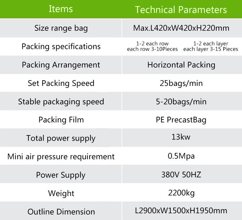 1)It adopts advanced servodrive,touch screen  PLC.Parameter is setted conveniently  quickly.Machine automatically completes product  the automatic feeding,arranging,poening the bag,filling into the bag,inserting angle  sealing.